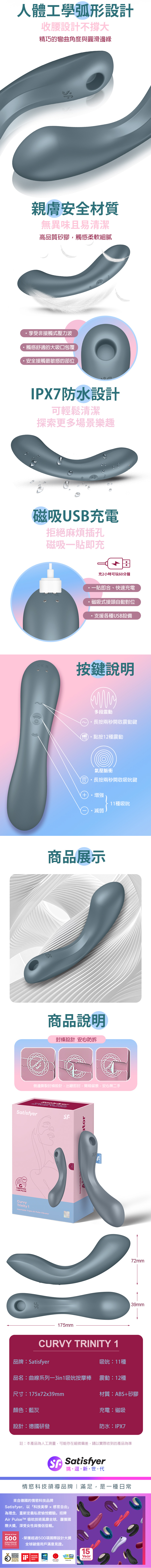 品名:Satisfyer|Curvy Trinity 1|曲線吸吮按摩棒 藍灰